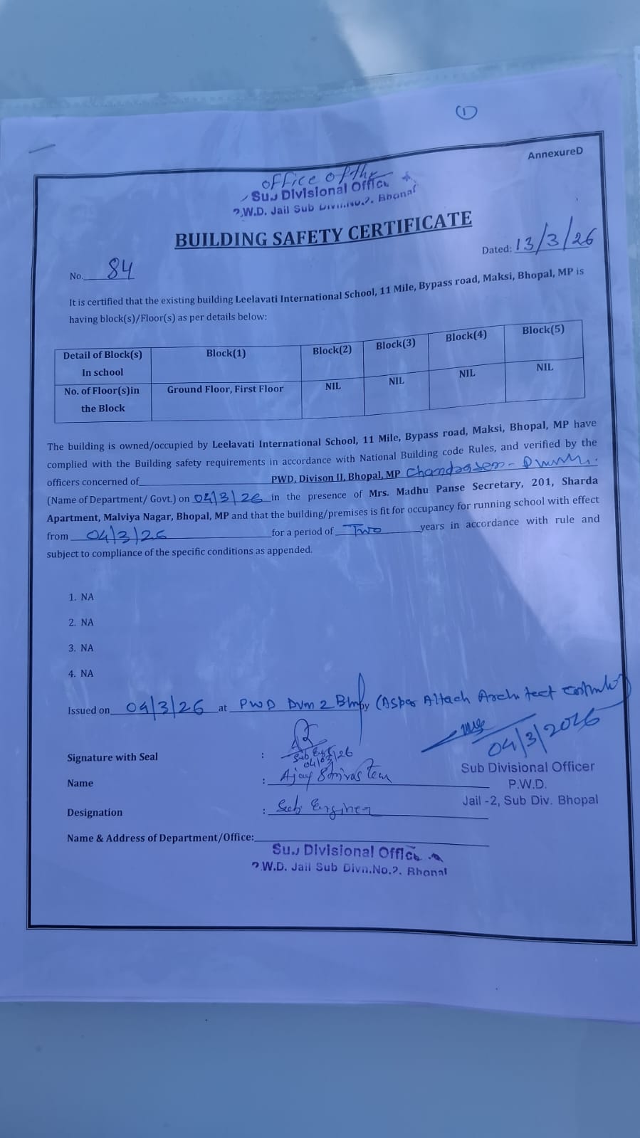 WARD No. 85, 11MILES BY PASS ROAD, MAKSI, BHOPAL (M.P)-462047